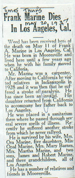 Survived By Wife, Ora Marine; daughters, Opal Marine, Mrs. Mary Barnes, and Mrs. Martha Marine; sons, James and Robert Marine.