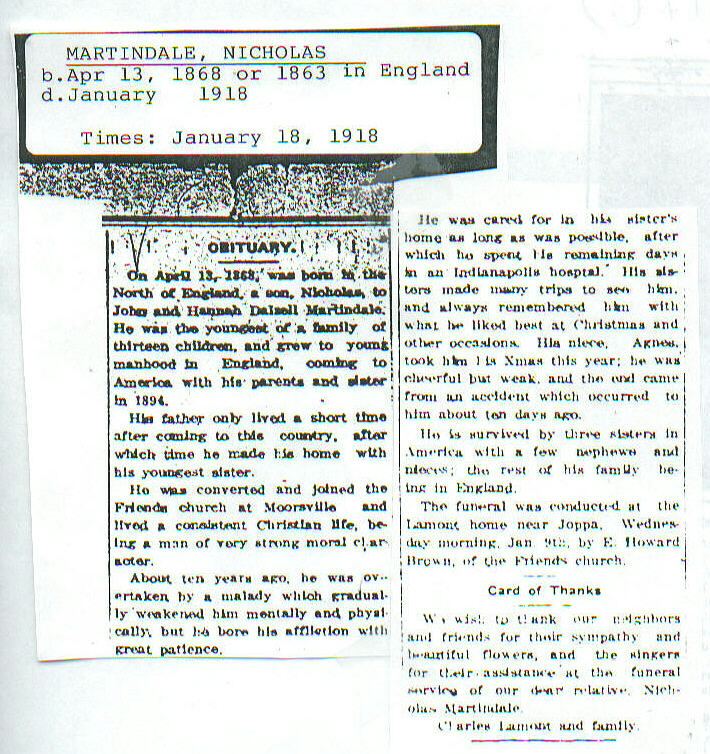| Obituary Source | Mooresville Times, Jan. 11, 1918 |