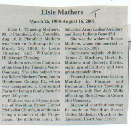 | Other | Preceded in death by parents, Louis and Wilhelmina (Hildebrand) Thiesing. |