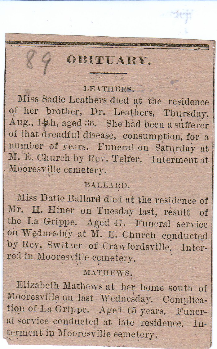 | Obituary Source | Martinsville Republican, Aug. 21, 1890 |