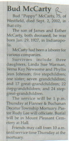 Survived By Three daughters, Linda Sue Warman, Verna Kay Newsome, and Phyllis Jean Johnson; 5 stepchildren; one sister; 7 grandchildren; 17 great-grandchildren; 22 stepgrandchildren; 24 stepgreat-grandchildren.