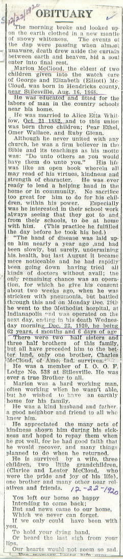 Survived By Wife; 3 children, Pearl Ethel, Omer Wallace, and Ruby Glenn; brother, Charles McCloud.
