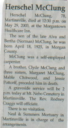 | Other | Age 78. Preceded in death by a brother, Clyde McClung, and three sisters, Margaret McClung, Mable Chitwood, and Jessie Pottorff. |