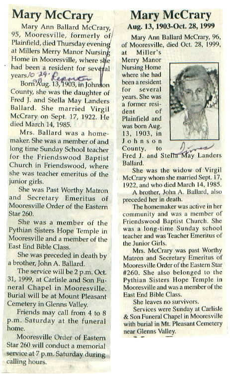 | Obituary Source | Moroesville Times, Nov. 3, 1999 |
