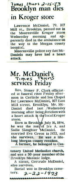 | Survived By | Wife; sister, Gertrude McDaniel. |