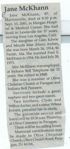 Other Preceded in death by spouse; parents, Glen Edwin and Maude Mae (Ham) Archer; brothers, Clyde and Wilbur Archer; sister, Wilma Everett.