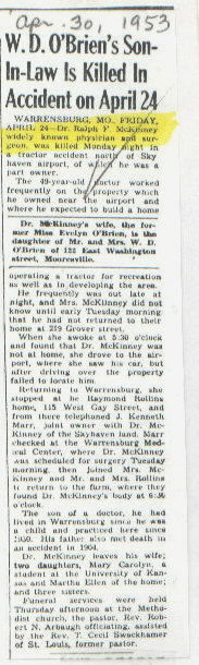 Survived By Wife; daughters, Mary Carolyn and Martha Ellen McKinney; 3 sisters.