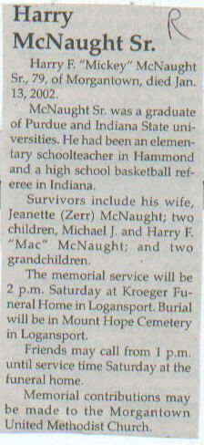 | Survived By | Spouse; 2 children, Michael J. and Harry F. "Mac" McNaught; 2 grandchildren. |