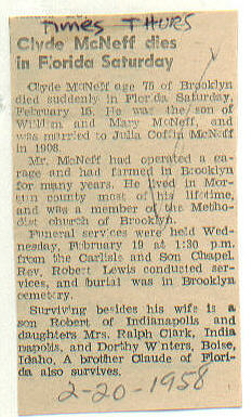 Survived By Wife; son, Robert McNeff; daughters, Mrs. Ralph Clark and Dorothy Winters; brother, Claude McNeff.