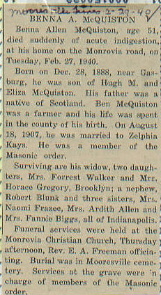Survived By Wife; daughters, Mrs. Forrest Walker and Mrs. Horace Gregory; sisters, Mrs. Naomi Frazee, Mrs. Ardeth Allen, and Mrs. Fannie Biggs.