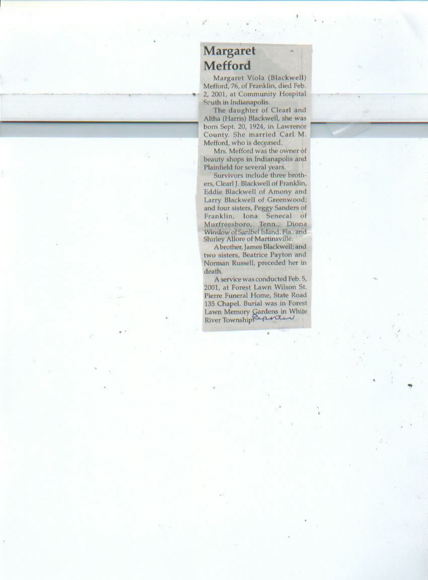 | Other | Preceded in death by spouse; parents, Clearl and Altha (Harris) Blackwell; brother, James Blackwell; sisters, Beatrice Payton and Norma Russell. |