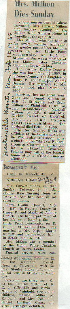 | Obituary Source | Martinsville Reporter, Feb. 10, 1969 |