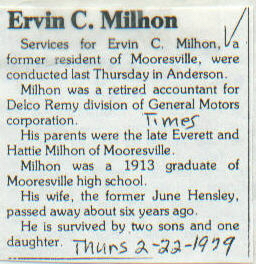 | Obituary Source | Mooresville Times, Feb. 22, 1979 |