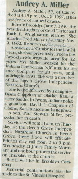 | Survived By | Husband; daughter, Diana Chapman; sister, Sandra Jo Byers. |