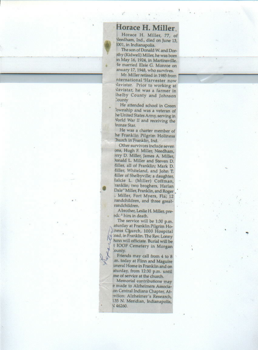 Other Preceded in death by parents, Donald W. and Dorothy (Kidwell) Miller; brother, Leslie H. Miller. U.S. Army veteran of World War II.