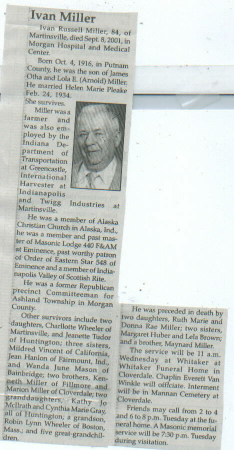 Other Age 84. Preceded in death by parents, James Otha and Lola E. (Arnold) Miller; daughters, Ruth Marie and Donna Rae Miller; sisters, Margaret Huber and Lela Brown; brother, Maynard Miller.