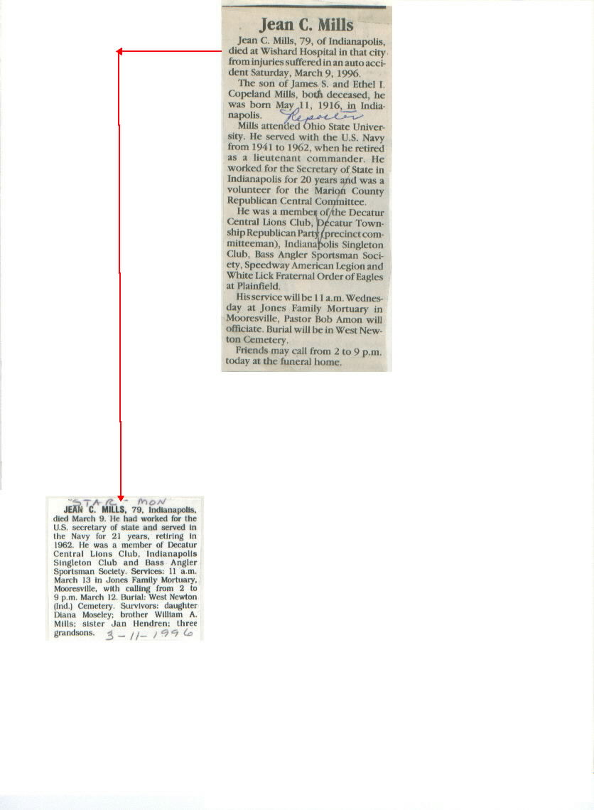 | Survived By | Daughter, Diana Mosely; brother, William A. Mills; sister, Jeanette Hendren. |