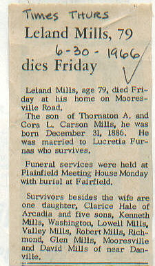 | Survived By | Wife; sons, Kenneth, Lowell, David, Robert, and Glen Mills; daughter, Clarice Hale. |