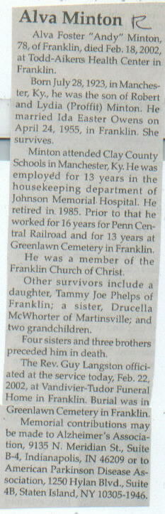 Survived By Widow; daughter, Tammy Joe Phelps; sister, Drucella McWhorter; 2 grandchildren.