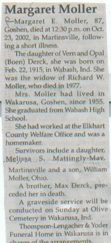 Survived By Daughter, Melissa S. Mattingly-May; son, William Moller.