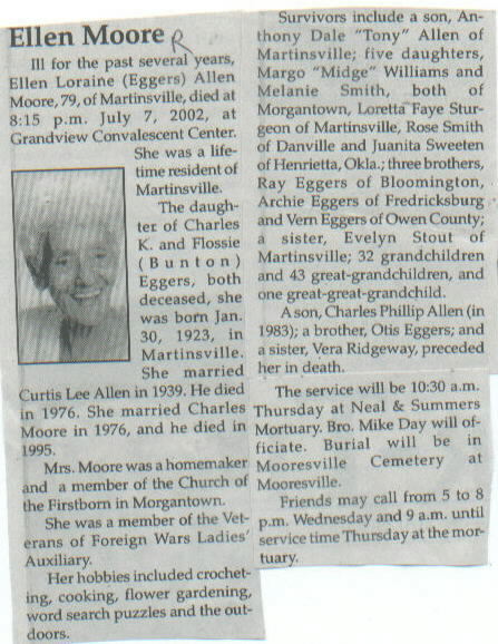 | Other | Preceded in death by both husbands; a son, Charles Phillip Allen (in 1983); a brother, Otis Eggers; and a sister, Vera Ridgeway. |
