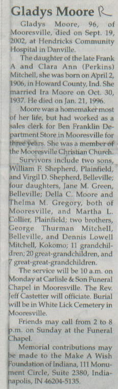 | Survived By | Two sons, William F. Shepherd and Virgil D. Shepherd; 4 daughters, Jane M. Green, Della C. Moore, Thelma M. Gregory, and Martha L. Collier; 2 brothers, George Thurman Mitchell and Dennis Lowell; 11 grandchildren; 20 great-grandchildren; 7 great-great-grandchildren. |