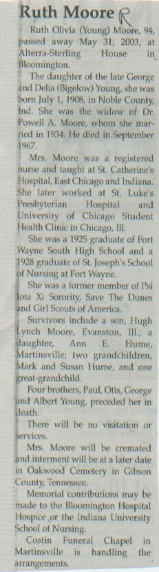 Survived By Son, Hugh Lynch Moore; daughter, Ann E. Hume; 2 grandchildren, Mark and Susan Hume; one great-grandchild.