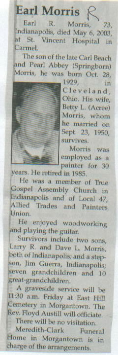 | Survived By | Widow; 2 sons, Larry R. and Dave L. Morris; stepson, Jim Guerra; 7 grandchildren; 10 great-grandchildren. |