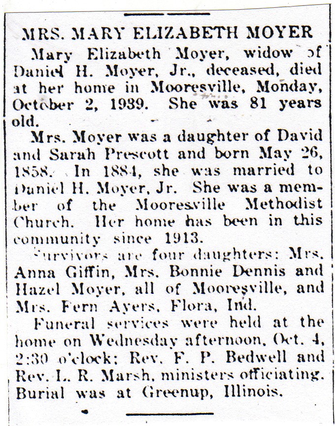 | Obituary Source | Mooresville Times, Oct. 5, 1939 |