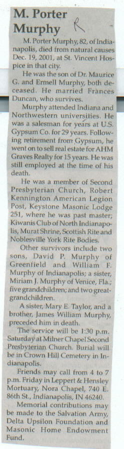 Other Preceded in death by parents, Dr. Maurice G. and Ermell Murphy; sister, Mary E. Taylor; brother, James William Murphy.