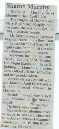 | Other | Preceded in death by parents, Charles V. and Mary F. (Crurto) Murphy. Cremation. |