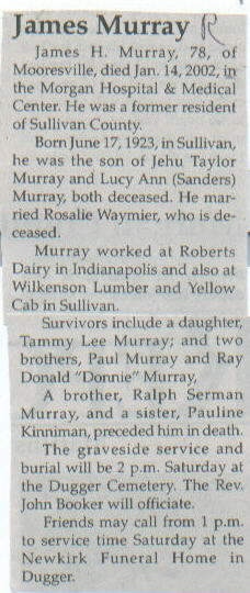 | Survived By | Daughter, Tammy Lee Murray; 2 brothers, Paul and Ray Donald "Donnie" Murray. |