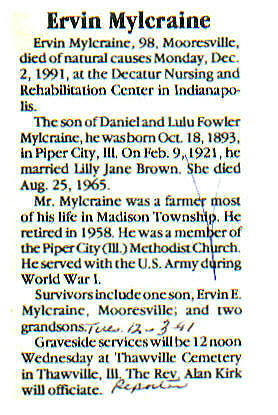 | Obituary Source | Martinsville Reporter, Dec. 3, 1991 |