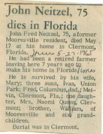 | Survived By | Wife, Mary; sons, Ivan, Fred, and Melvin Neitzel; daughter, Mrs. Naomi Queen; brother, William Neitzel. |