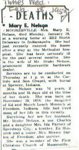 | Survived By | Husband; son, Charles Nelson; daughter, Mrs. Ida Parrott; brother, Ed Minnich; sister, Mrs. Minnie Dallen. |