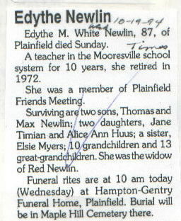 Survived By Sons, Thomas and Max Newlin; daughters, Jane Timian and Alice Ann Huus; sister, Elsie Myers.