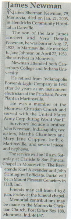 | Survived By | Widow; brother, John Newman; 2 sisters, Martha Chambers and Mary Jane Crippen; several nieces and nephews. |
