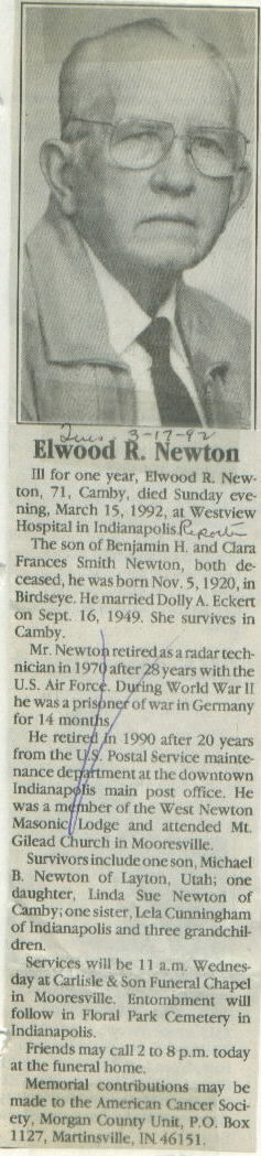| Survived By | Wife; son, Michael B. Newton; daughter, Linda Sue Newton; sister, Lela Cunningham. |