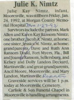 | Survived By | Parents, Mark Allen and Karen Kay Ransom Nimtz; sister, Jessica M. Nimtz; brother, Jacob A. Nimtz. |