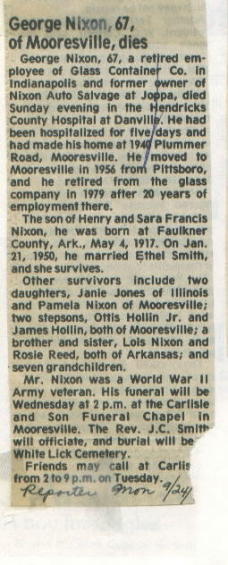 | Survived By | Wife; daughters, Janie Jones and Pamela Nixon; brother, Louis Nixon; sister, Rosie Reed. |