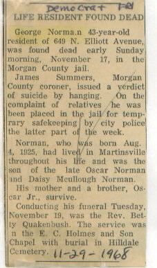 | Other | Age 43. Found dead by hanging in the Morgan Co. jail; ruled a suicide. |