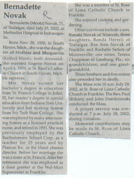 | Survived By | Spouse; son, Ronald Novak; 3 daughters, Ronda Herrell, Rae Ann Novak, and Rochelle Sellers; sister, Teresa Chappman; 6 grandchildren; one great-grandchild. |
