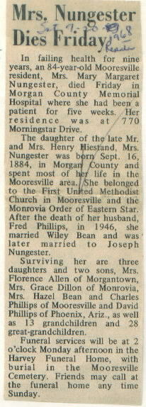 | Spouse | 1)Fred Phillips; 2) Wiley Bean; 3)Joseph Nungester |
