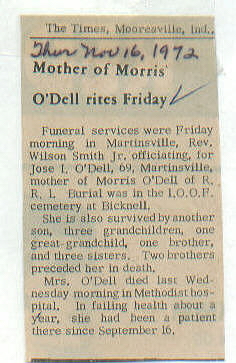 | Survived By | Son, Morris O'Dell; another son; 1 brother; 3 sisters. |