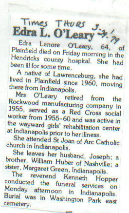 | Survived By | Husband, Joseph; brother, William Huber; sister, Margaret Green. |