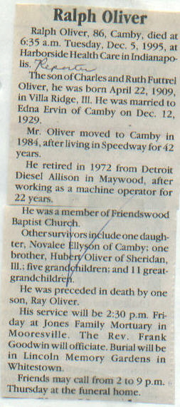 | Survived By | Wife; daughter, Novalee Ellyson; brother, Hubert Oliver. |