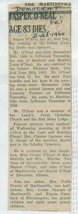 | Obituary Source | Martinsville Democrat, Feb. 28, 1964 |