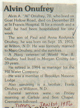 | Other | Age 70. US Navy veteran, WW II. Cremation. |