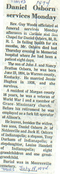 | Survived By | Wife; sons, Daniel Osborn, Jr. and Jack E. Osborn. |