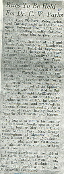 | Other | Age 71. Veterinarian. Buried in Park family plot, Mooresville Cemetery. |